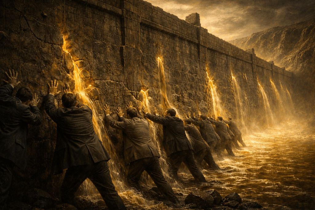 These are the predictable consequences of attempting, by state coercion, to suppress a natural law. Every intervention required to maintain the fiat system is evidence of pressure building behind the dam: the monetization of government debt, the suppression of interest rates toward or even below zero, financial repression (holding interest rates below the rate of inflation), the quantitative easing programs of the post-2008 era, the inflationary surges of the early 2020s. The fingers in the dam multiply because the cracks multiply.